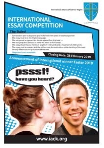 The International Alliance of Catholic Knights is announcing an International Essay Competition for young people in the last three years of Secondary School.